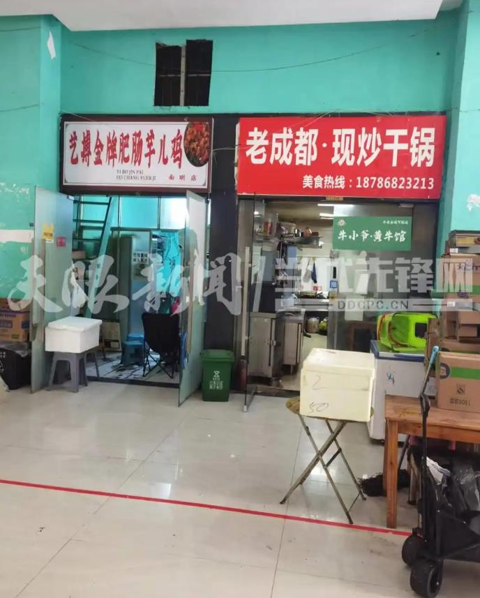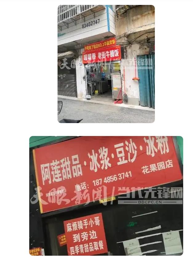探访过程中记者发现这样的情况不在少数,“一家专做牛肉的店·炒牛河”的店铺上张贴有“全粥道·潮汕砂锅粥取餐处”字样,“老成都·现炒干锅”的店铺上张贴有“牛小爷·黄牛馆”字样。