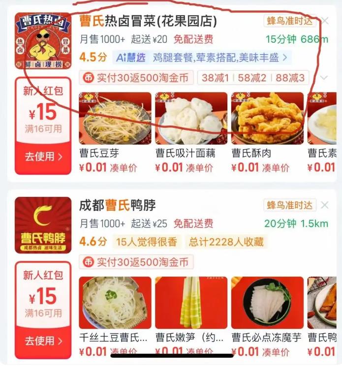 同店不同名的外卖商家