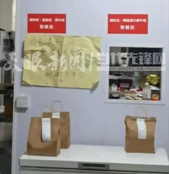 张贴对面取餐的店铺